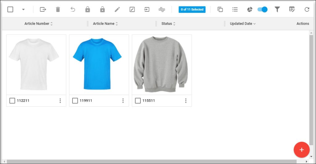 - If the catalog of which you are viewing the articles is a master catalog with Apply Size Scale slider activated, the Articles page appears as shown below: