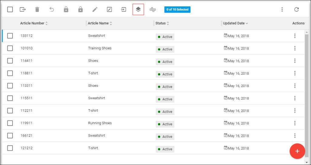 Two new buttons are added: Assign selected articles (+) and Un-assign selected articles (–). These buttons are used to manage which articles of the master catalog are assigned to the inherited catalog. More information on assigning articles to inherited catalogs is available in “Manage articles of inherited catalogs“.