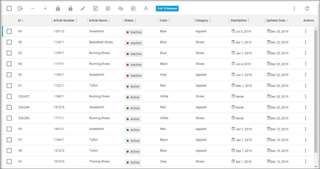 - You can view the article segmentations and prices using the Column Chooser as mentioned in “Column chooser and pre-defined columns“.